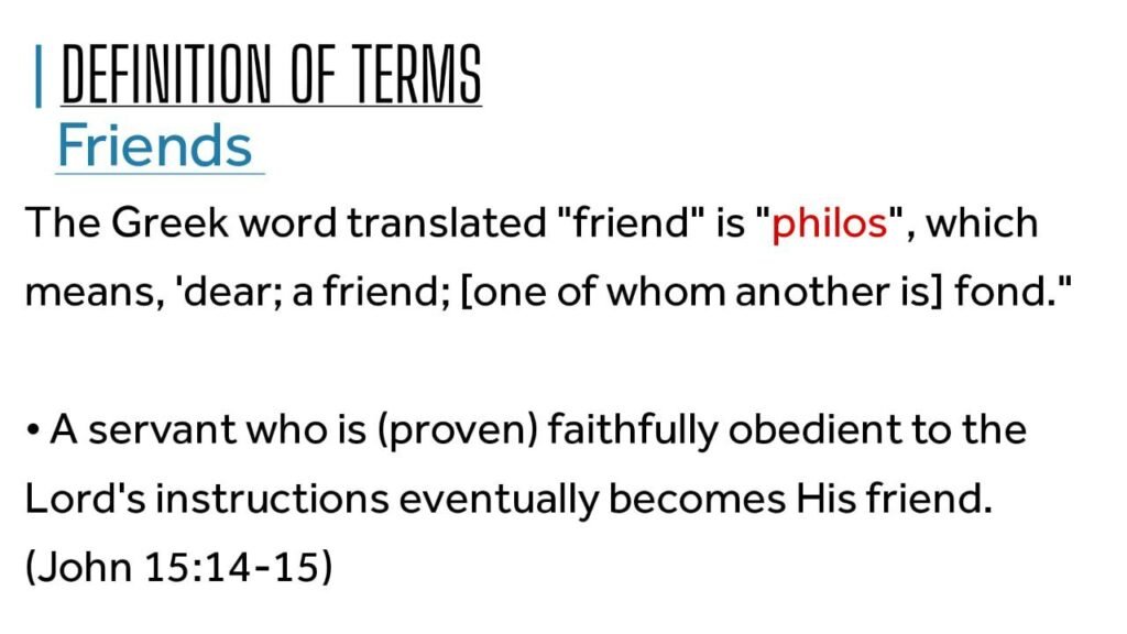 • The Greek word translated “friend” is “philos”, which means, ‘dear; a friend; [one of whom another is] fond.’