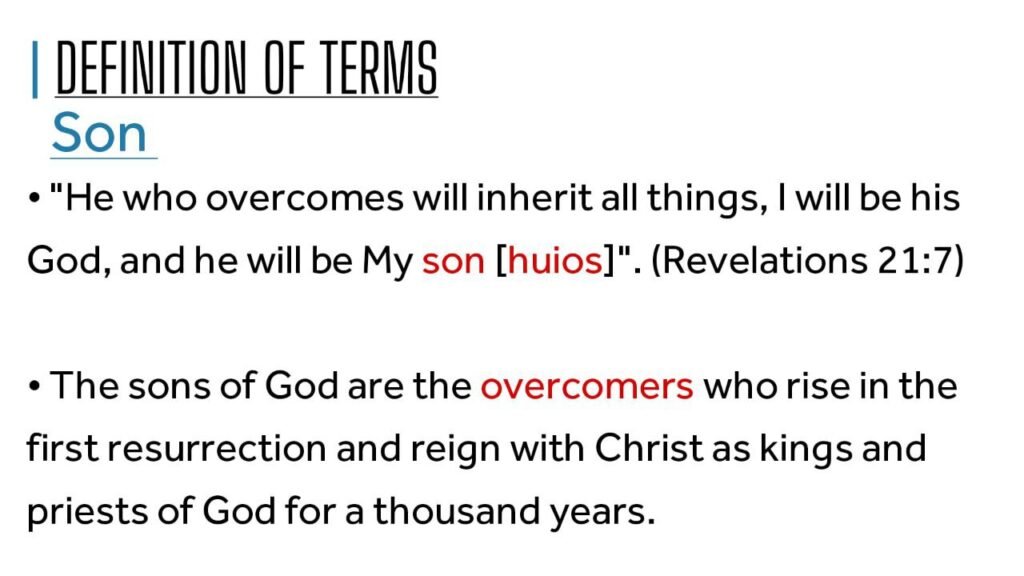 • The sons of God are the overcomers who rise in the first resurrection and reign with Christ as kings and priests of God for a thousand years.
