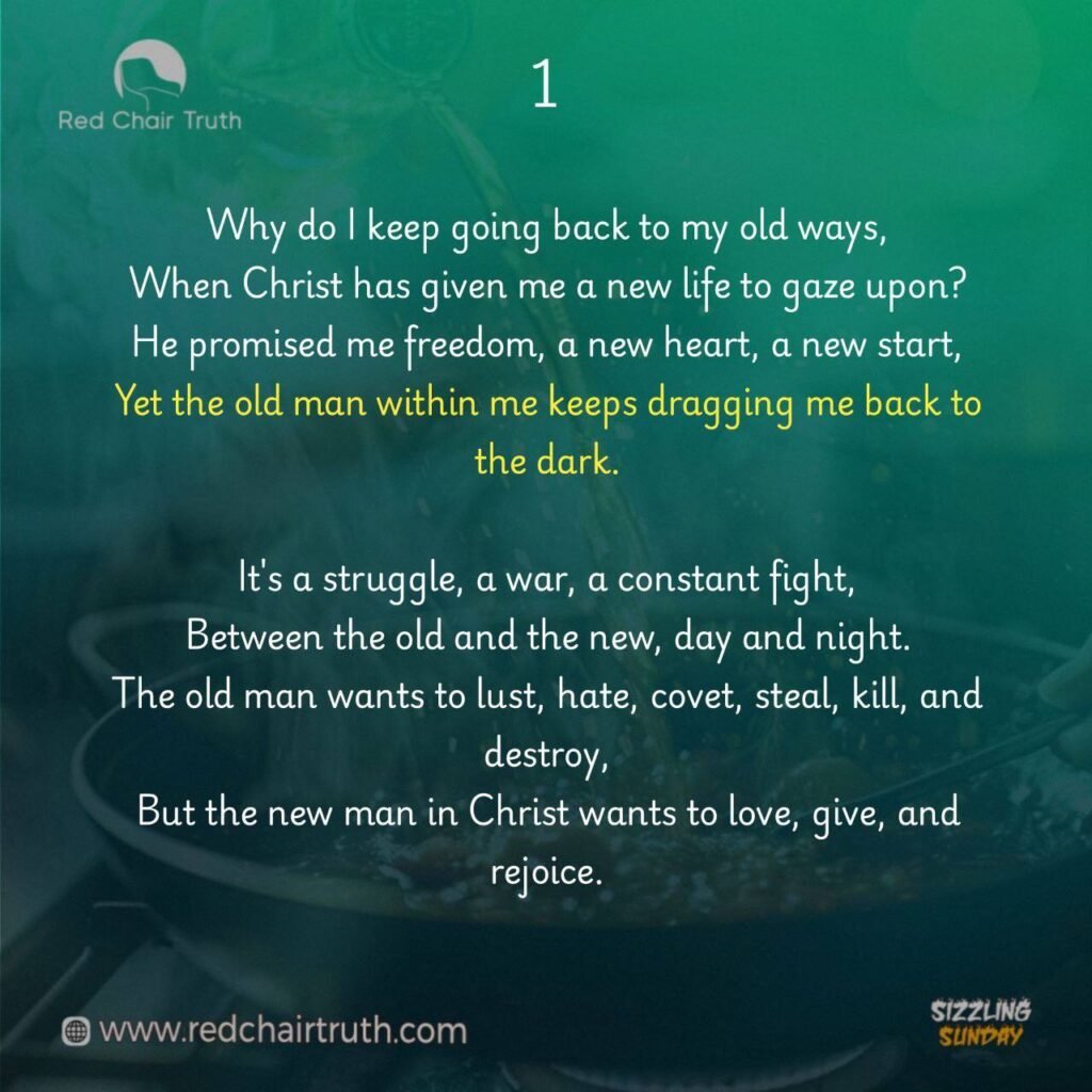 The old man wants to lust, hate, covet, steal, kill, and destroy