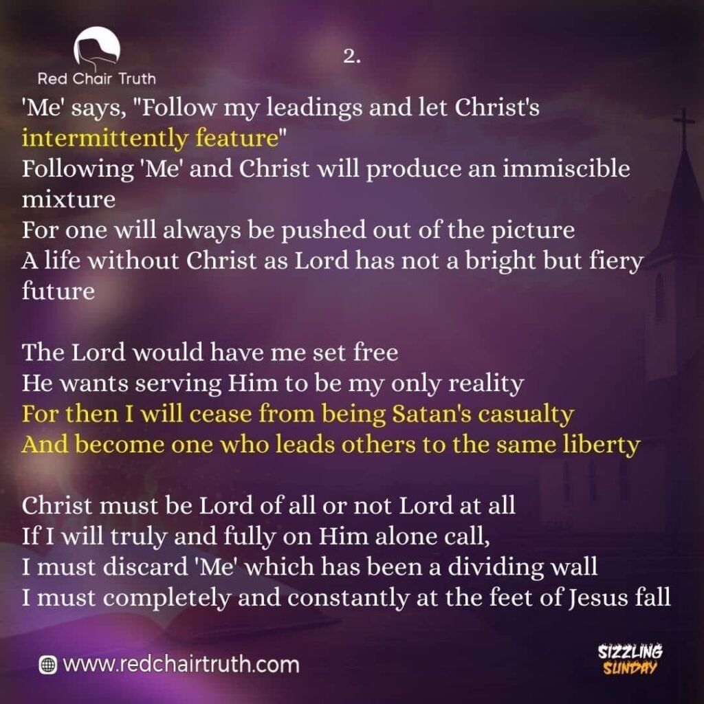 ‘Me’ says, “Follow my leadings and let Christ’s intermittently feature”