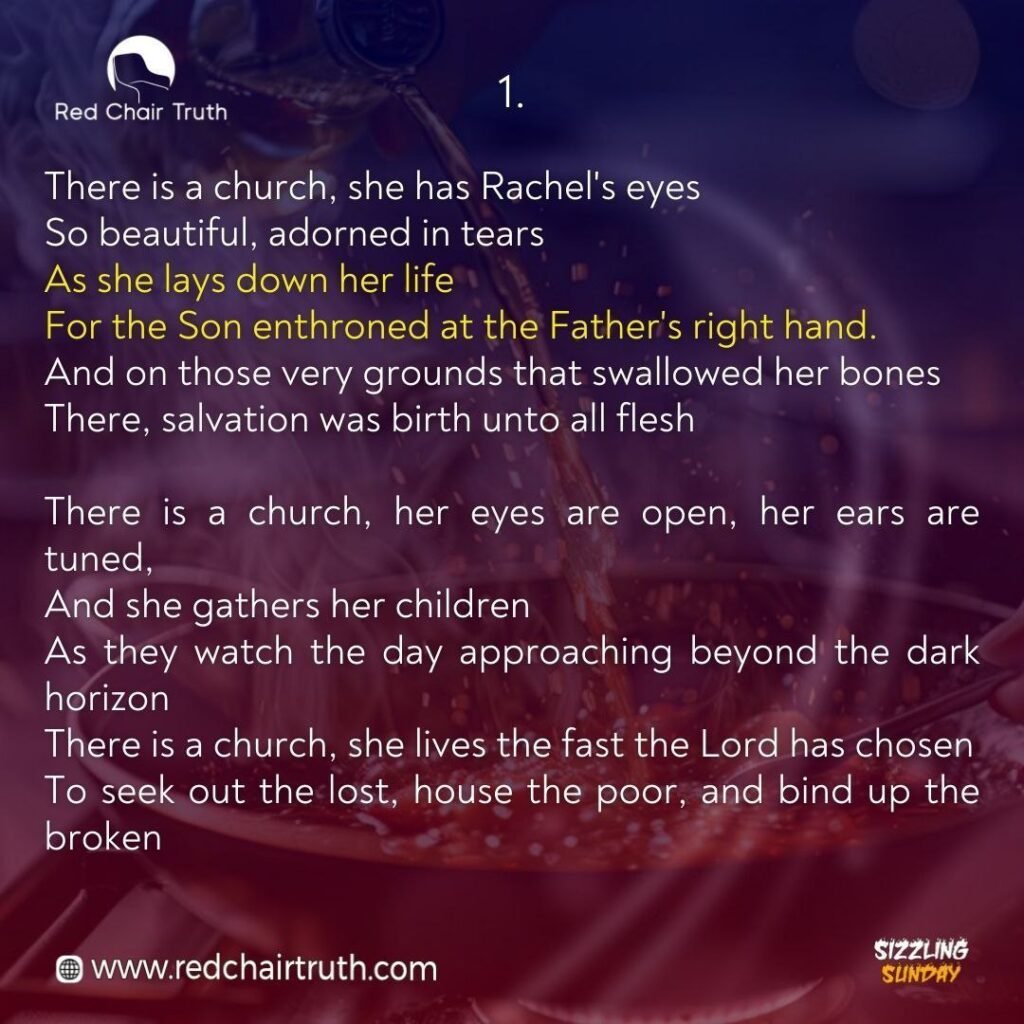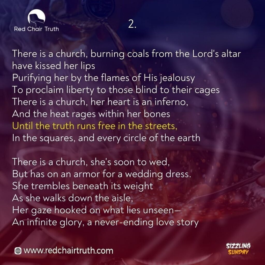 There is a church, burning coals from the Lord’s altar have kissed her lips