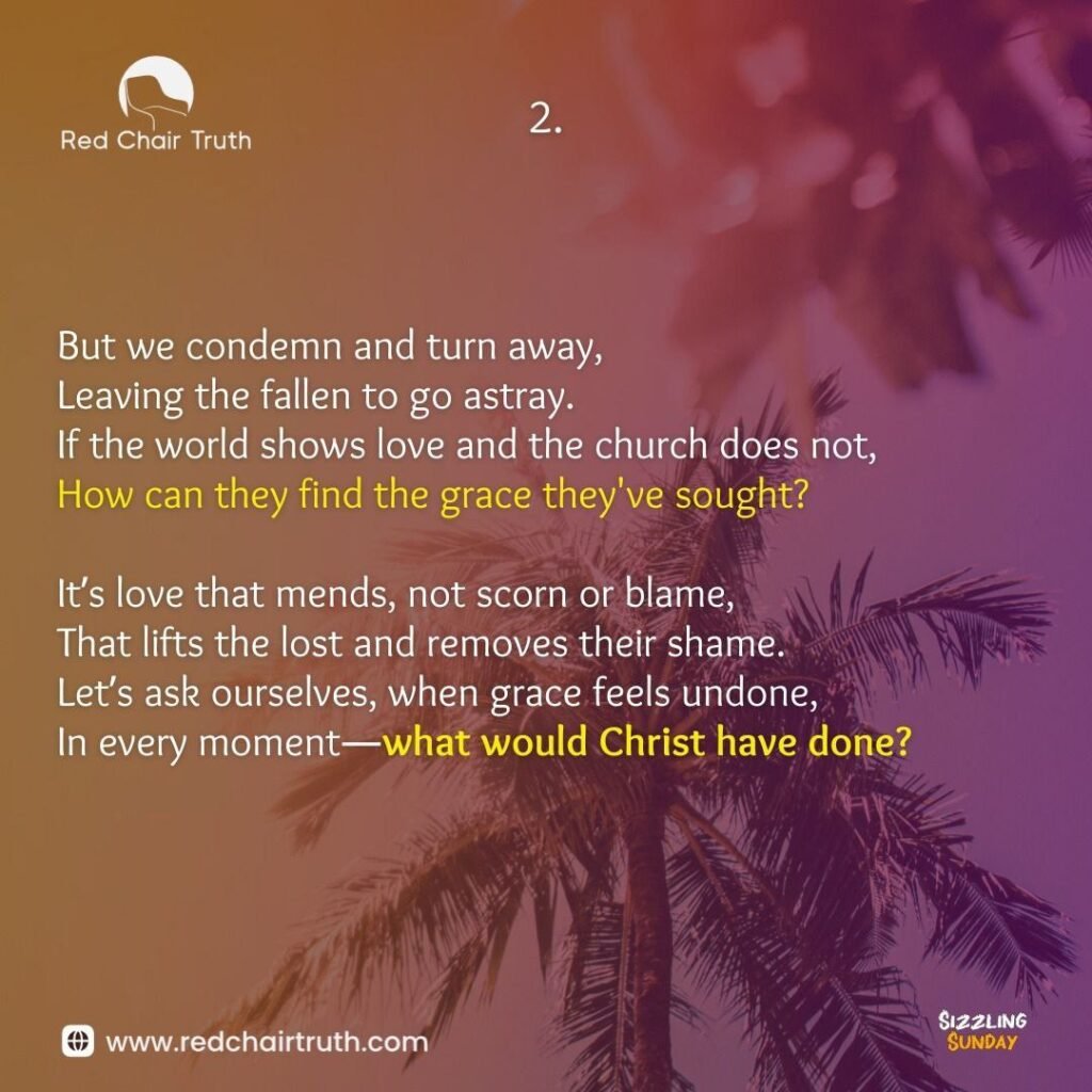 The church, a beacon of love and grace, Should reflect the kindness in Jesus’ face.