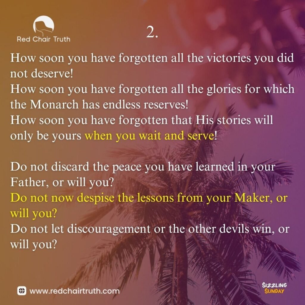 How soon you have forgotten that His stories will only be yours when you wait and serve!