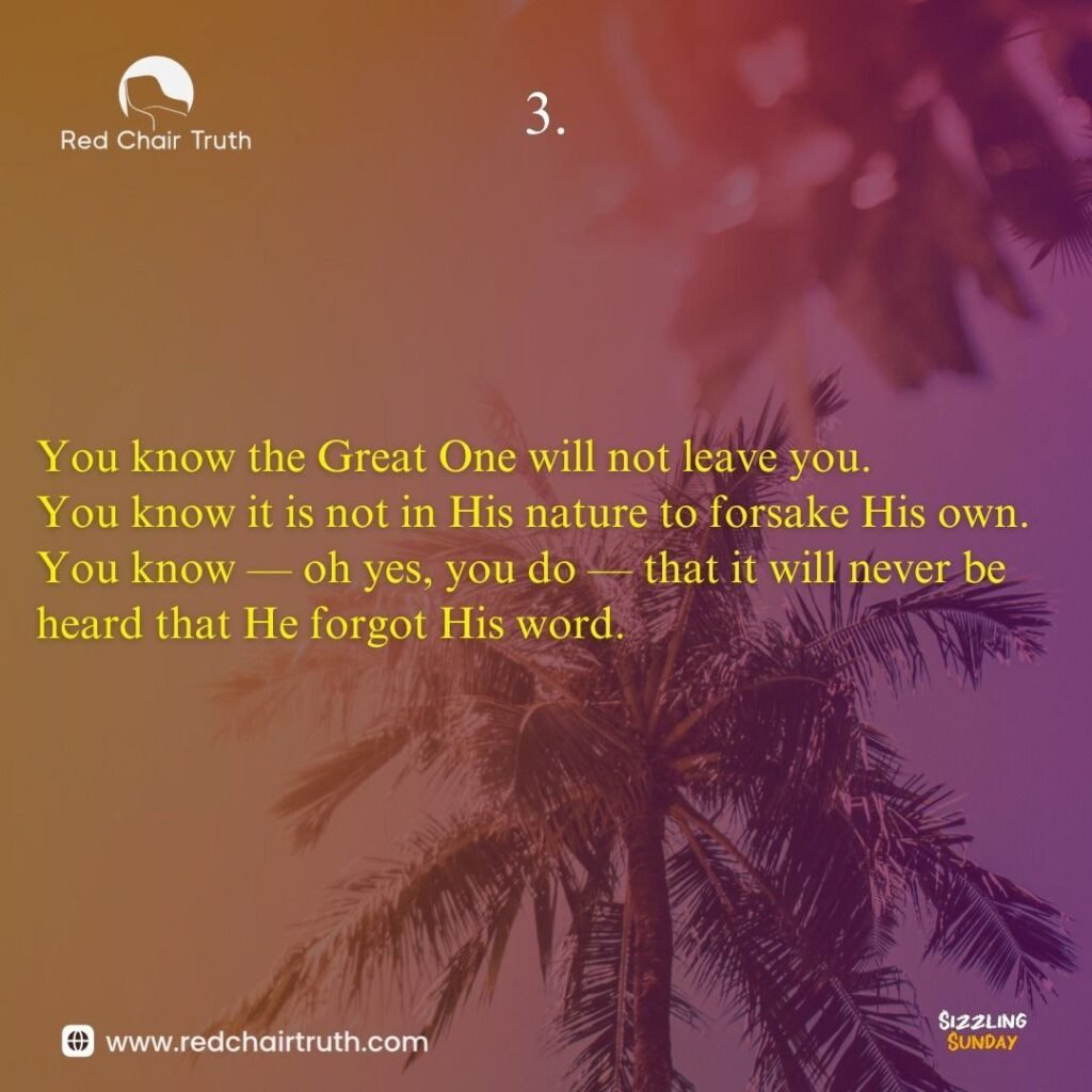 You know it is not in His nature to forsake His own.