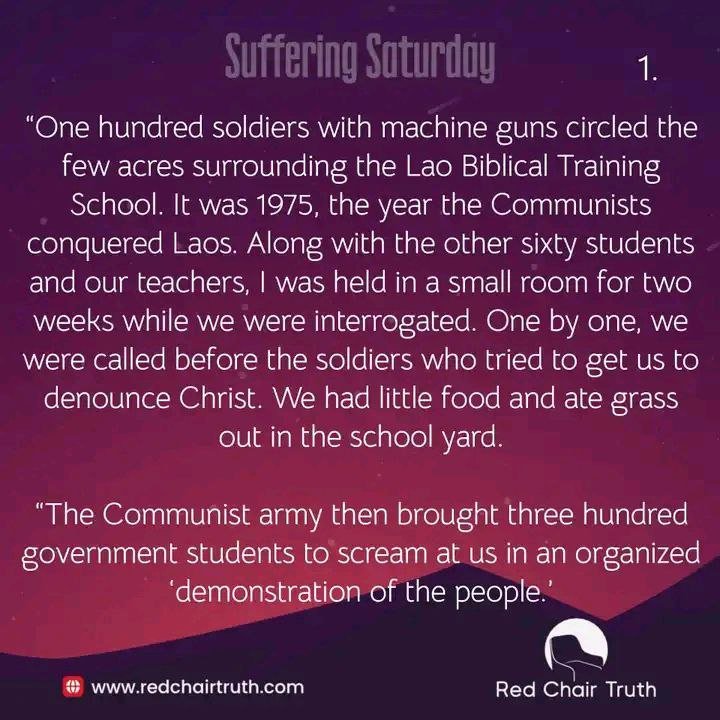 “One hundred soldiers with machine guns circled the few acres surrounding the Lao Biblical Training School. It was 1975, the year the Communists conquered Laos. Along with the other sixty students and our teachers, I was held in a small room for two weeks while we were interrogated. One by one, we were called before the soldiers who tried to get us to denounce Christ. We had little food and ate grass out in the school yard.