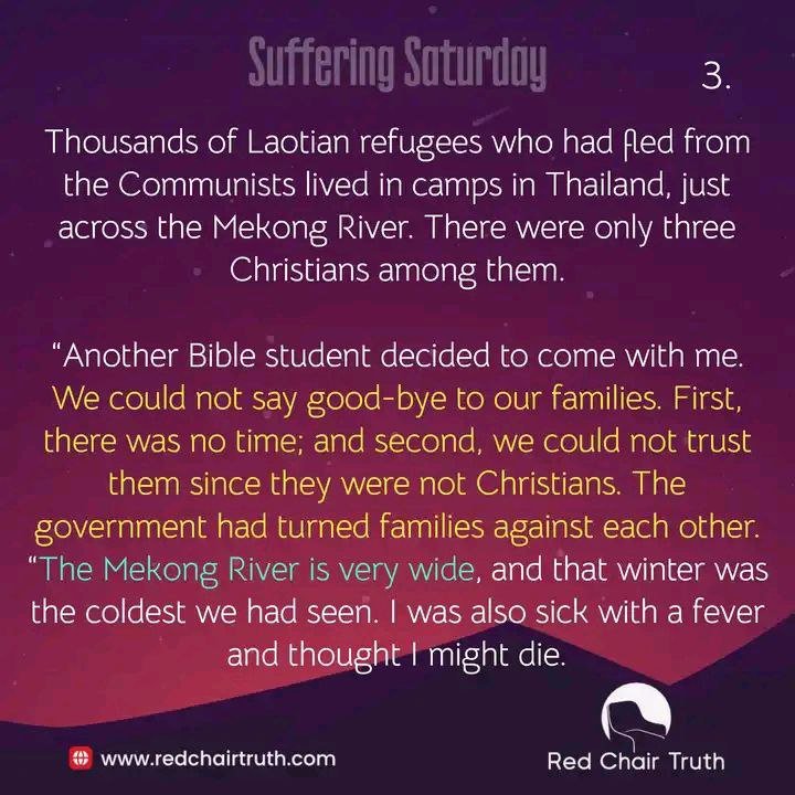 “On the Sunday morning we were released, I decided to escape to Thailand to have more freedom to share Christ. Thousands of Laotian refugees who had fled from the Communists lived in camps in Thailand, just across the Mekong River. There were only three Christians among them.
