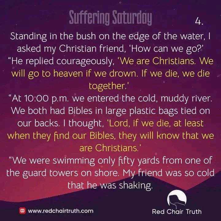 “At 10:00 p.m. we entered the cold, muddy river. We both had Bibles in large plastic bags tied on our backs. I thought, ‘Lord, if we die, at least when they find our Bibles, they will know that we are Christians.’