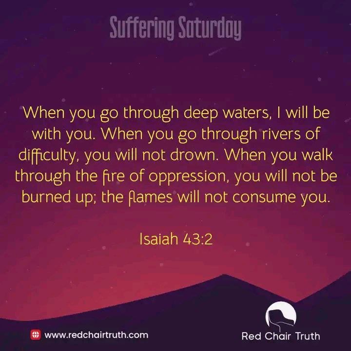When you go through deep waters, I will be with you. When you go through rivers of difficulty, you will not drown. When you walk through the fire of oppression, you will not be burned up; the flames will not consume you.
