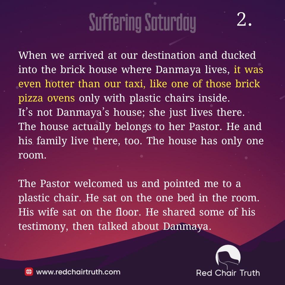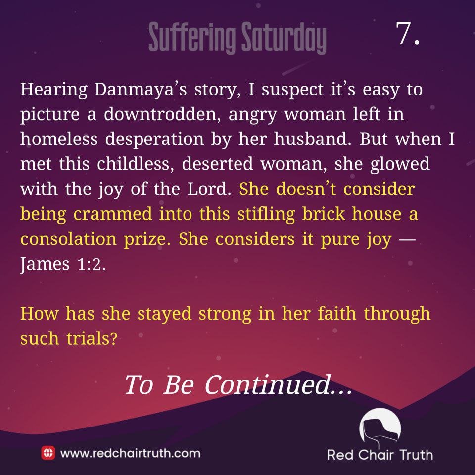 When her earthly family kicked her out, her spiritual family opened their doors and took her in to the small brick house we sat and sweated in. Hearing Danmaya’s story, I suspect it’s easy to picture a downtrodden, angry woman left in homeless desperation by her husband. But when I met this childless, deserted woman, she glowed with the joy of the Lord. She doesn’t consider being crammed into this stifling brick house a consolation prize. She considers it pure joy—James 1:2. How has she stayed strong in her faith through such trials?
