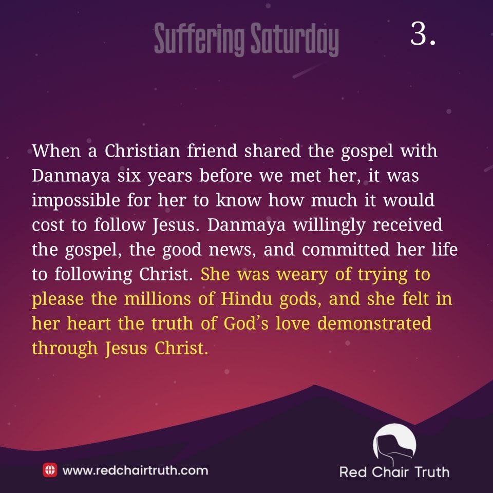 When a Christian friend shared the gospel with Danmaya six years before we met her, it was impossible for her to know how much it would cost to follow Jesus. Danmaya willingly received the gospel, the good news, and committed her life to following Christ. She was weary of trying to please the millions of Hindu gods, and she felt in her heart the truth of God’s love demonstrated through Jesus Christ.