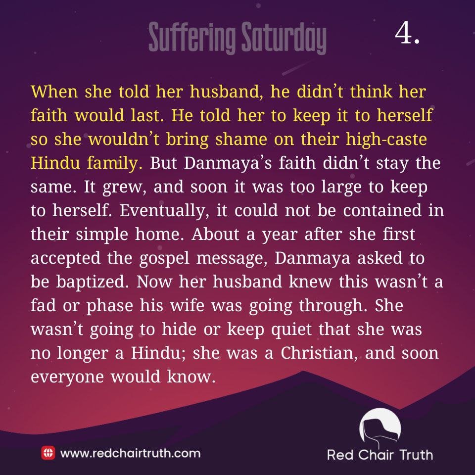 “This is not our custom,” he told her. “Give up your faith. Otherwise I will leave you. I don’t want you being with me since you are a Christian and I am a Brahman (high-caste Hindu).” Eventually, he threw Danmaya’s possessions outside. She was no longer welcome in her own home. Later, he took a new wife.