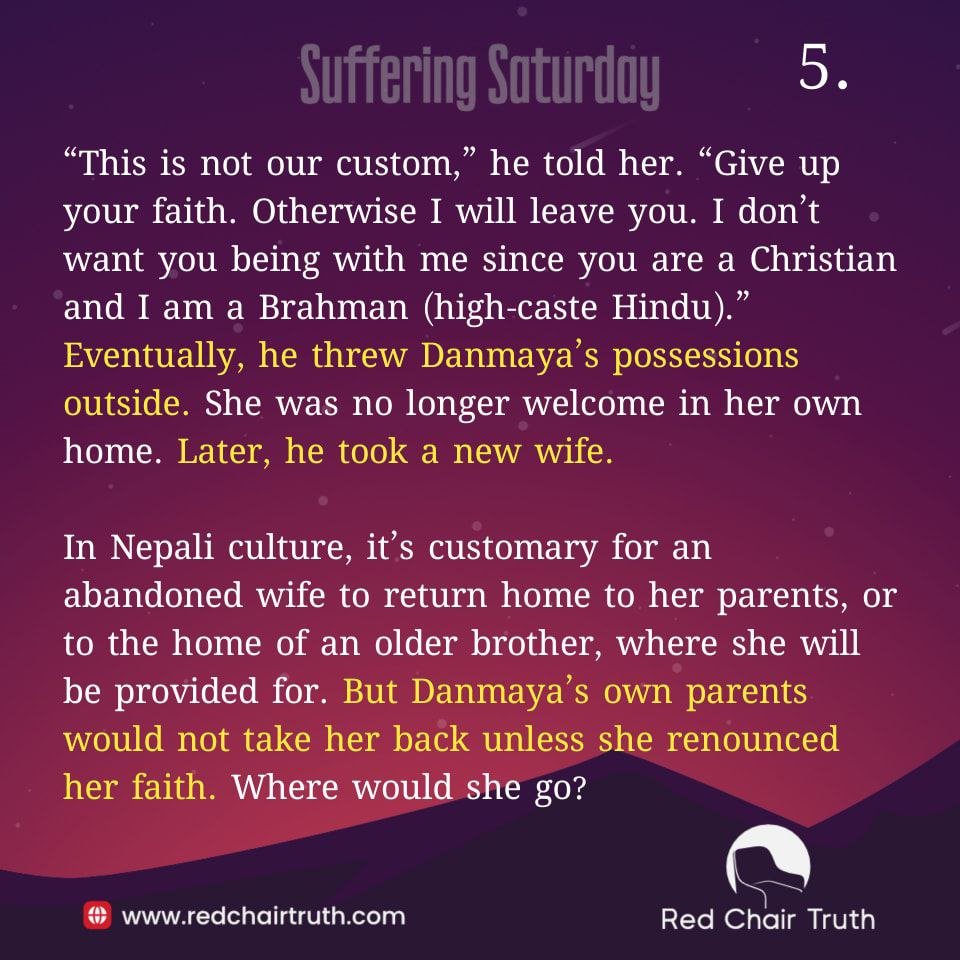 In Nepali culture, it’s customary for an abandoned wife to return home to her parents, or to the home of an older brother, where she will be provided for. But Danmaya’s own parents would not take her back unless she renounced her faith. Where would she go?