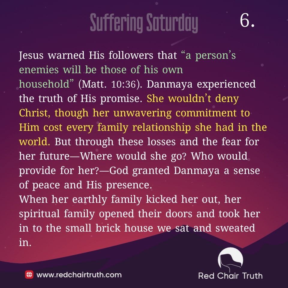 Jesus warned His followers that “a person’s enemies will be those of his own household” (Matt. 10:36). Danmaya experienced the truth of His promise. She wouldn’t deny Christ, though her unwavering commitment to Him cost every family relationship she had in the world. But through these losses and the fear for her future—Where would she go? Who would provide for her?—God granted Danmaya a sense of peace and His presence.