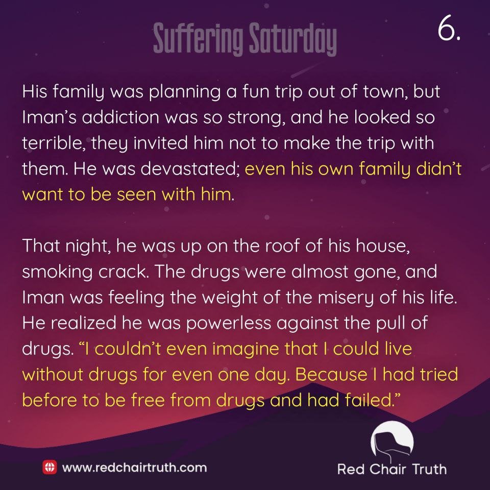 His family was planning a fun trip out of town, but Iman’s addiction was so strong, and he looked so terrible, they invited him not to make the trip with them. He was devastated; even his own family didn’t want to be seen with him.