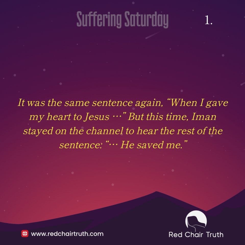 It was the same sentence again, “When I gave my heart to Jesus …” But this time, Iman stayed on the channel to hear the rest of the sentence: “… He saved me.”