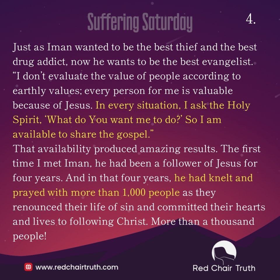 That availability produced amazing results. The first time I met Iman, he had been a follower of Jesus for four years. And in that four years, he had knelt and prayed with more than 1,000 people as they renounced their life of sin and committed their hearts and lives to following Christ. More than a thousand people!