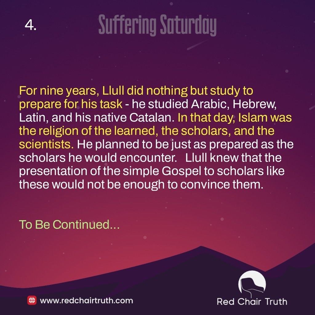 For nine years, Llull did nothing but study to prepare for his task—he studied Arabic, Hebrew, Latin, and his native Catalan. In that day, Islam was the religion of the learned, the scholars, and the scientists. He planned to be just as prepared as the scholars he would encounter. Llull knew that the presentation of the simple Gospel to scholars like these would not be enough to convince them.