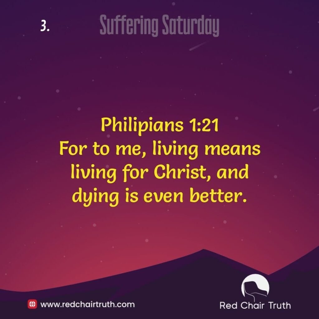 For to me, living means living for Christ, and dying is even better. Philippians 1:21.