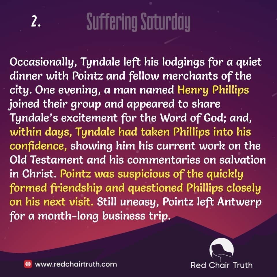 Tyndale could not comprehend the desperation of the church leaders to protect their man-made kingdom and to keep people in the dark with “vain superstitions and false doctrine.” Tyndale’s supporters understood the wickedness of the Lord’s enemies who were combing Europe for Tyndale, and, so, they kept him hidden in safe houses throughout Germany and Belgium. He was completing his translation work at the home of Thomas Pointz, a Christian merchant in Antwerp.