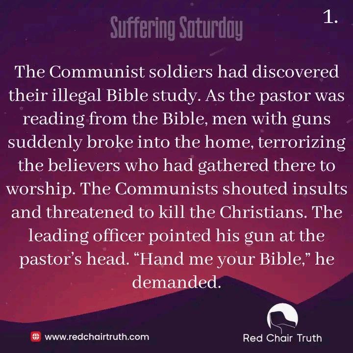 The Communist soldiers had discovered their illegal Bible study. As the pastor was reading from the Bible, men with guns suddenly broke into the home, terrorizing the believers who had gathered there to worship. The Communists shouted insults and threatened to kill the Christians. The leading officer pointed his gun at the pastor’s head. “Hand me your Bible,” he demanded.