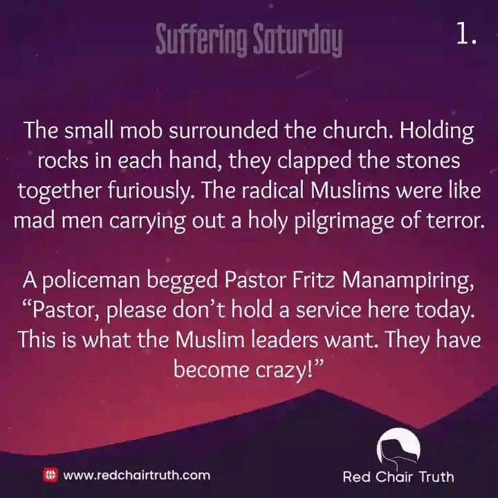 The small mob surrounded the church. Holding rocks in each hand, they clapped the stones together furiously. The radical Muslims were like mad men carrying out a holy pilgrimage of terror. A policeman begged Pastor Fritz Manampiring, “Pastor, please don’t hold a service here today. This is what the Muslim leaders want. They have become crazy!”