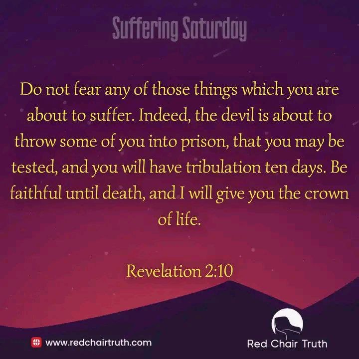 Do not fear any of those things which you are about to suffer. Indeed, the devil is about to throw some of you into prison, that you may be tested, and you will have tribulation ten days. Be faithful until death, and I will give you the crown of life. Revelation 2:10.