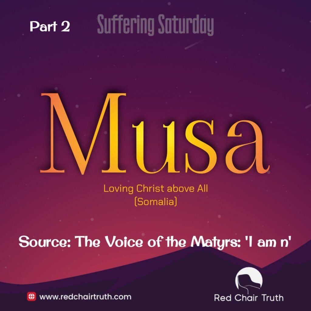“But your fam-” Musa held up a hand. “Ahmed, God is bigger than my family. I love my wife, I love my children; but, we are told in the Bible to love Christ above all.”