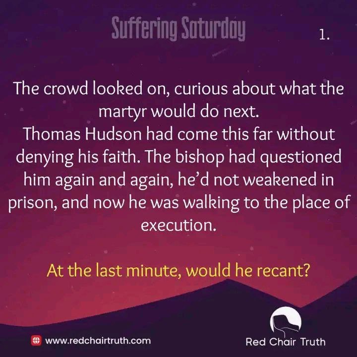 Thomas Hudson had come this far without denying his faith. The bishop had questioned him again and again, he’d not weakened in prison, and now he was walking to the place of execution.