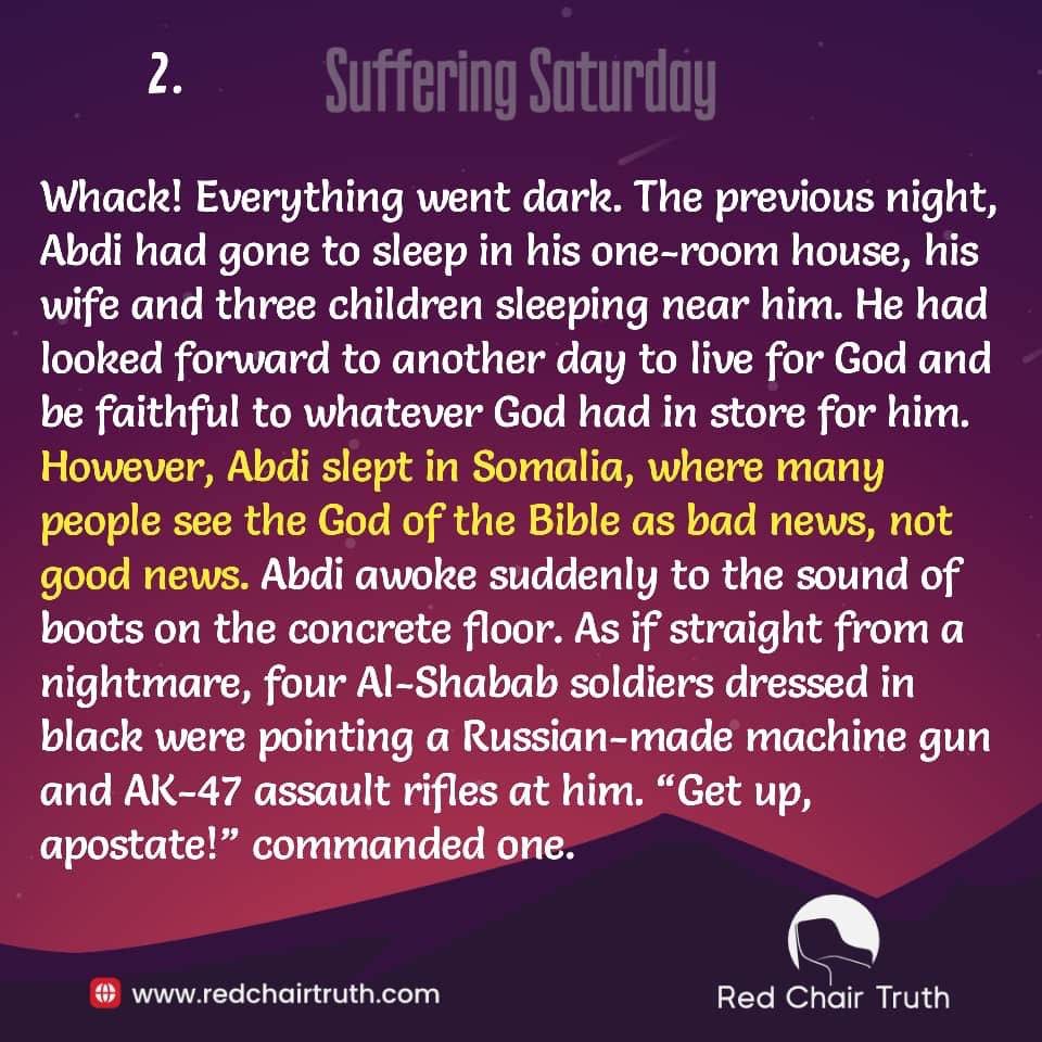 Whack! Everything went dark. The previous night, Abdi had gone to sleep in his one-room house, his wife and three children sleeping near him. He had looked forward to another day to live for God and be faithful to whatever God had in store for him. However, Abdi slept in Somalia, where many people see the God of the Bible as bad news, not good news. Abdi awoke suddenly to the sound of boots on the concrete floor. As if straight from a nightmare, four Al-Shabab soldiers dressed in black were pointing a Russian-made machine gun and AK-47 assault rifles at him. “Get up, apostate!” commanded one.