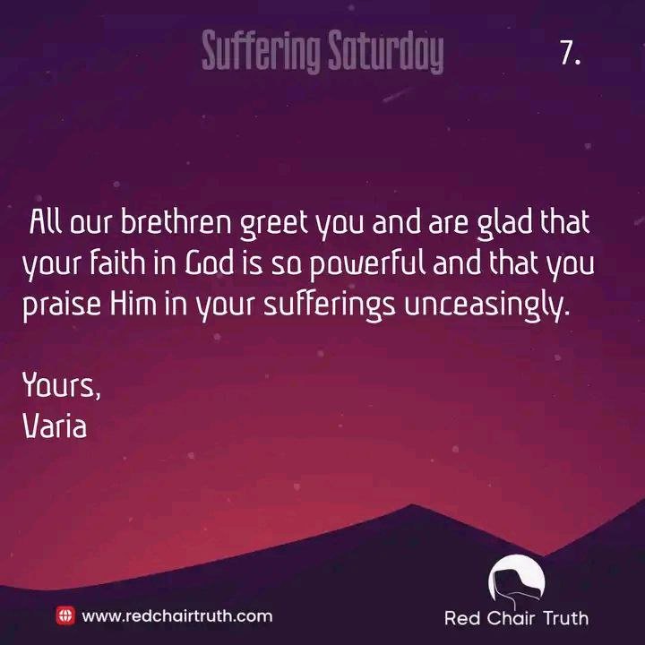 All our brethren greet you and are glad that your faith in God is so powerful and that you praise Him in your sufferings unceasingly.