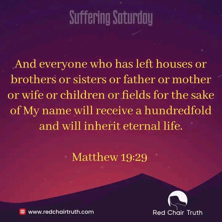 And everyone who has left houses or brothers or sisters or father or mother or wife or children or fields for the sake of My name will receive a hundredfold and will inherit eternal life. Matthew 19:29.