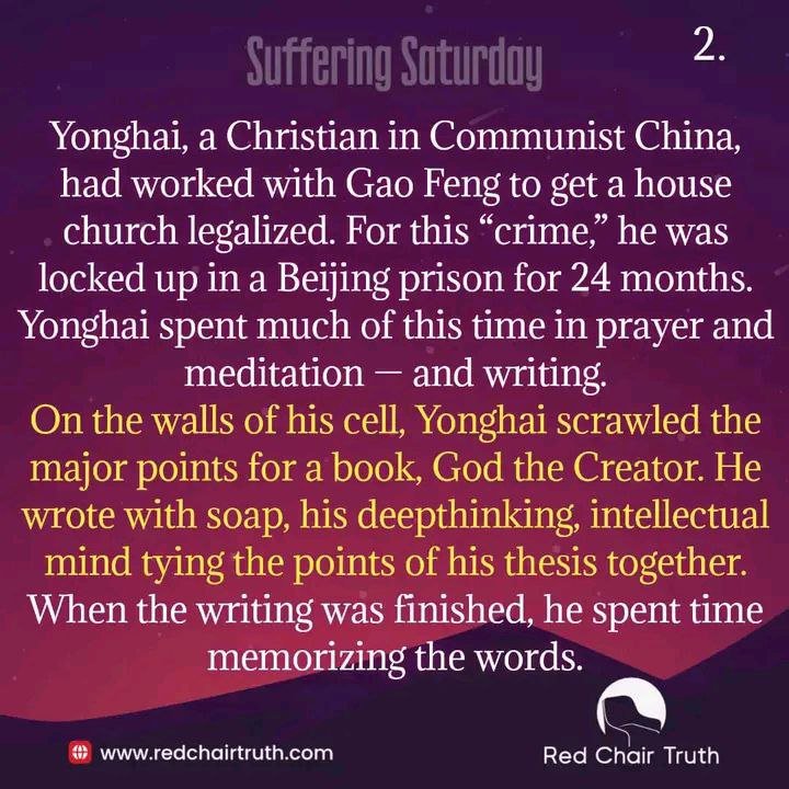 Yonghai, a Christian in Communist China, had worked with Gao Feng to get a house church legalized. For this “crime,” he was locked up in a Beijing prison for 24 months. Yonghai spent much of this time in prayer and meditation—and writing. On the walls of his cell, Yonghai scrawled the major points for a book, God the Creator. He wrote with soap, his deep-thinking, intellectual mind tying the points of his thesis together. When the writing was finished, he spent time memorizing the words.