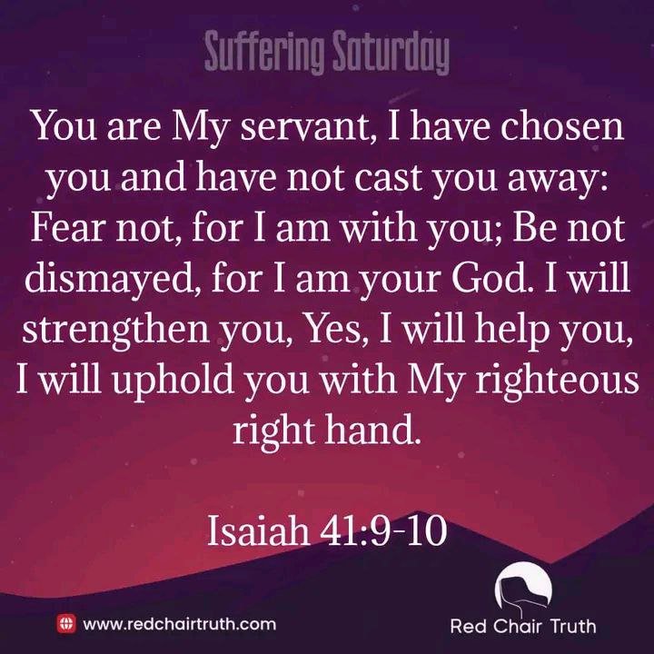 You are My servant, I have chosen you and have not cast you away: Fear not, for I am with you; Be not dismayed, for I am your God. I will strengthen you, Yes, I will help you, I will uphold you with My righteous right hand.