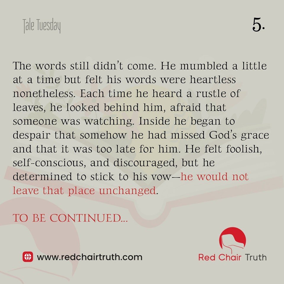 This exact phrase had run through his mind again and again since the time he had left the fence and entered the wood. He climbed into the enclosure within the fallen trees, knelt, and set his heart to pray. The words still didn’t come. He mumbled a little at a time but felt his words were heartless nonetheless. Each time he heard a rustle of leaves, he looked behind him, afraid that someone was watching. Inside he began to despair that somehow he had missed God’s grace and that it was too late for him. He felt foolish, self-conscious, and discouraged, but he determined to stick to his vow-he would not leave that place unchanged.