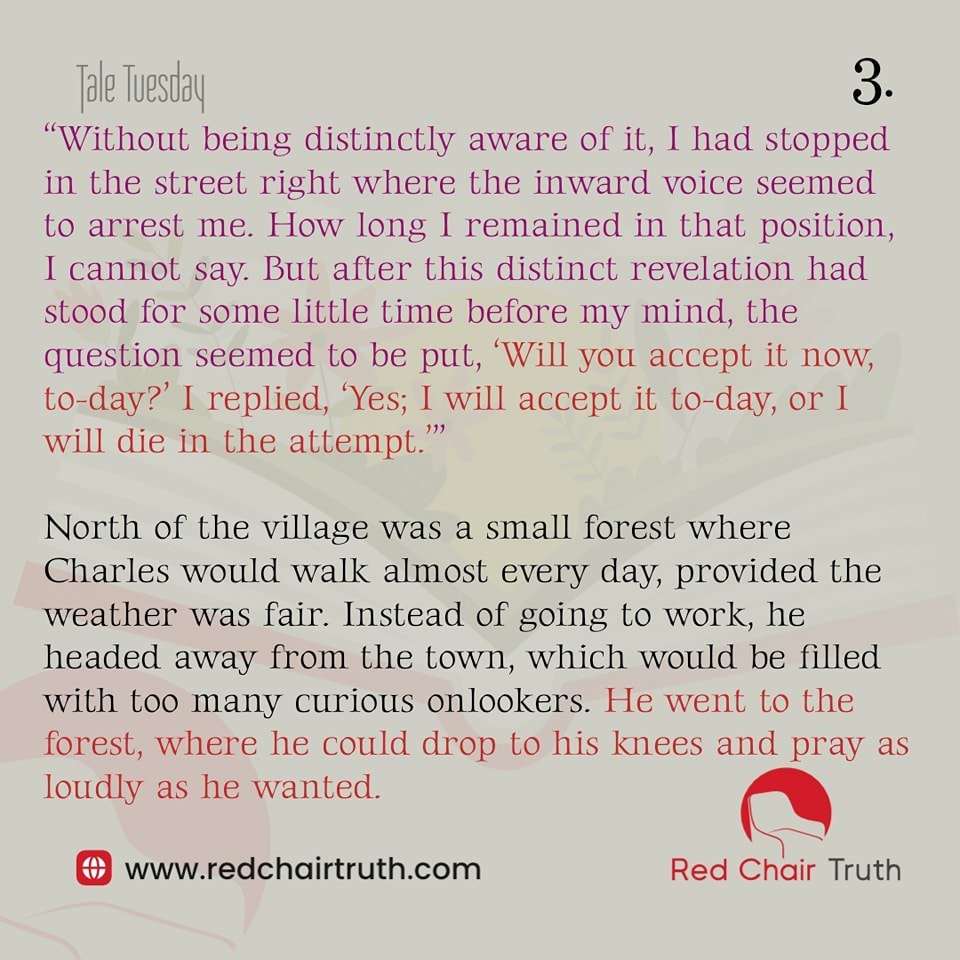 North of the village was a small forest where Charles would walk almost every day, provided the weather was fair. Instead of going to work, he headed away from the town, which would be filled with too many curious onlookers. He went to the forest, where he could drop to his knees and pray as loudly as he wanted.