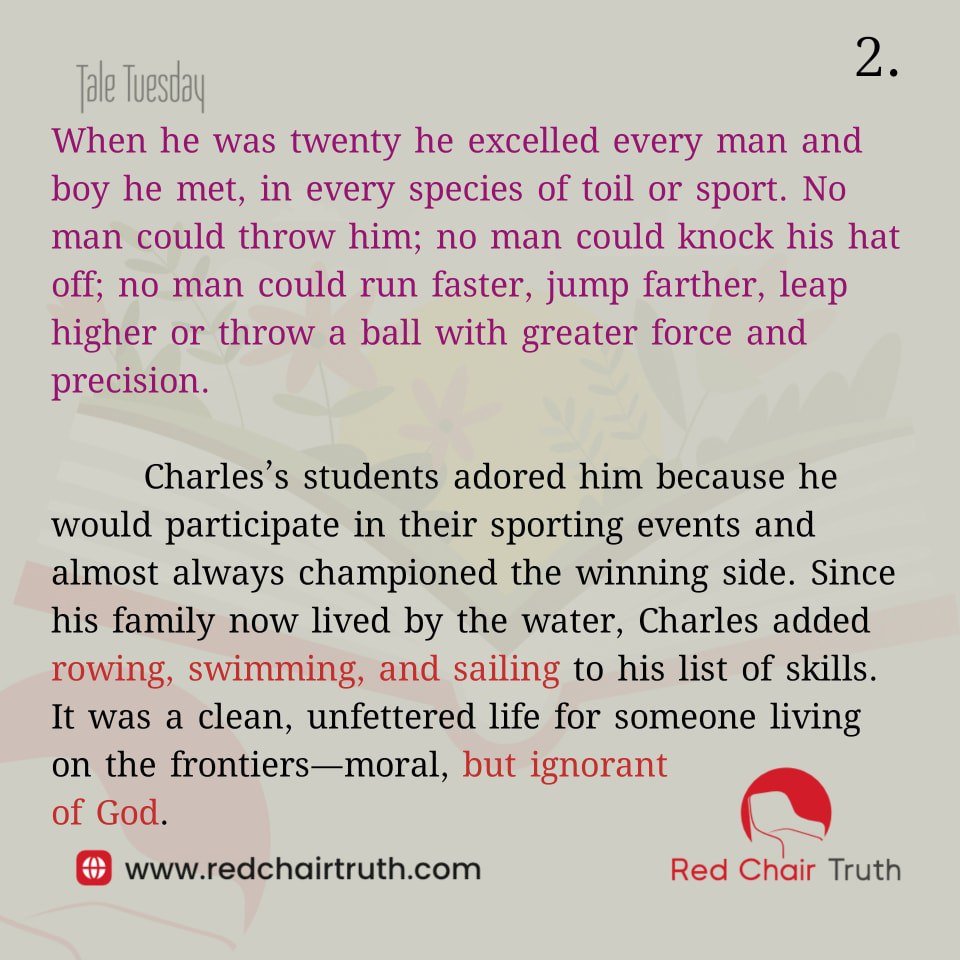 Charles’s students adored him because he would participate in their sporting events and almost always championed the winning side. Since his family now lived by the water, Charles added rowing, swimming, and sailing to his list of skills. It was a clean, unfettered life for someone living on the frontiers-moral, but ignorant of God.