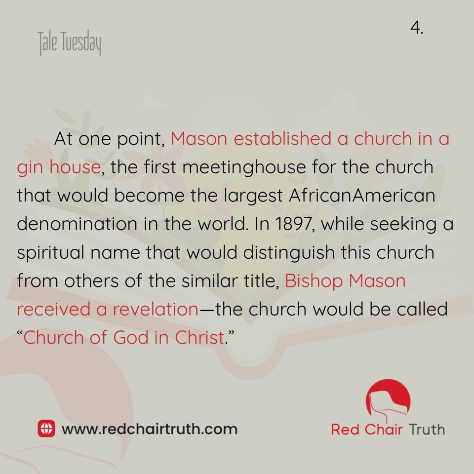 As previously noted, everywhere the Pentecostal fire broke out there were those who became detractors and agitators standing against God’s move of the Spirit. At one point, Mason established a church in a gin house, the first meetinghouse for the church that would become the largest African American denomination in the world. In 1897, while seeking a spiritual name that would distinguish this church from others of the similar title, Bishop Mason received a revelation-the church would be called “Church of God in Christ.”