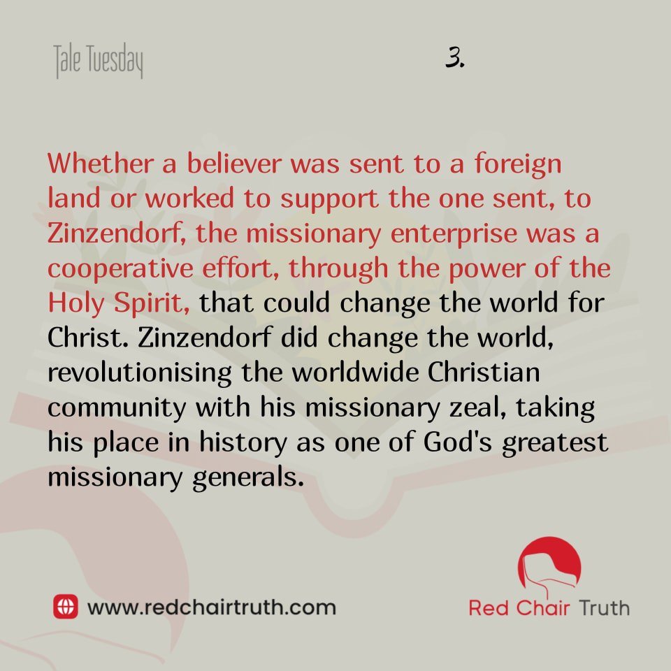 Whether a believer was sent to a foreign land or worked to support the one sent, to Zinzendorf, the missionary enterprise was a cooperative effort, through the power of the Holy Spirit, that could change the world for Christ. Zinzendorf did change the world, revolutionising the worldwide Christian community with his missionary zeal, taking his place in history as one of God’s greatest missionary generals.