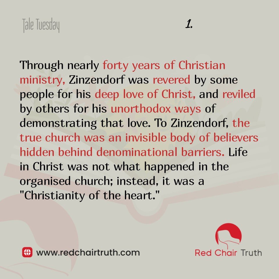 Through nearly forty years of Christian ministry, Zinzendorf was revered by some people for his deep love of Christ, and reviled by others for his unorthodox ways of demonstrating that love. To Zinzendorf, the true church was an invisible body of believers hidden behind denominational barriers. Life in Christ was not what happened in the organised church; instead, it was a “Christianity of the heart.”