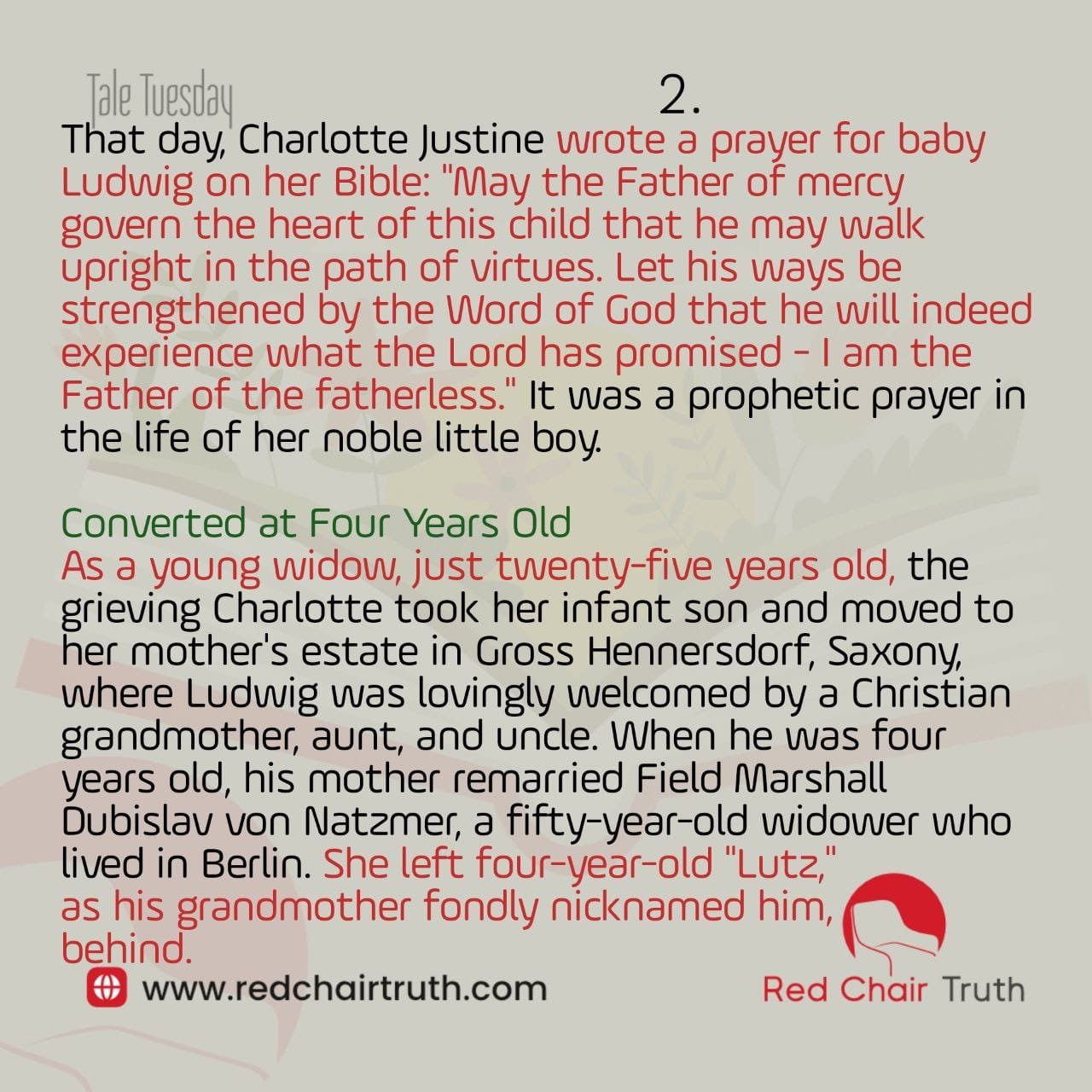 That day, Charlotte Justine wrote a prayer for baby Ludwig on her Bible: “May the Father of mercy govern the heart of this child that he may walk upright in the path of virtues. Let his ways be strengthened by the Word of God that he will indeed experience what the Lord has promised – I am the Father of the fatherless.” It was a prophetic prayer in the life of her noble little boy.