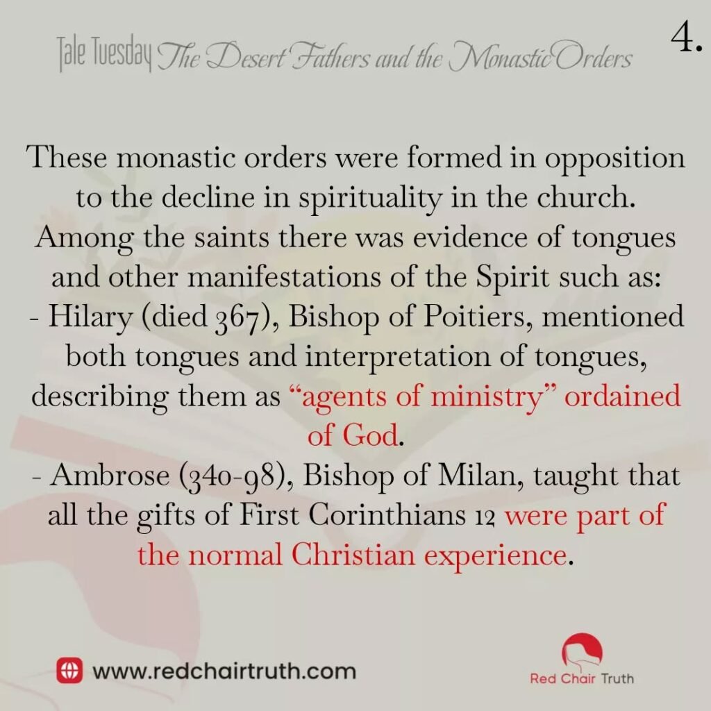 - Hilary (died 367), Bishop of Poitiers, mentioned both tongues and interpretation of tongues, describing them as “agents of ministry” ordained of God.