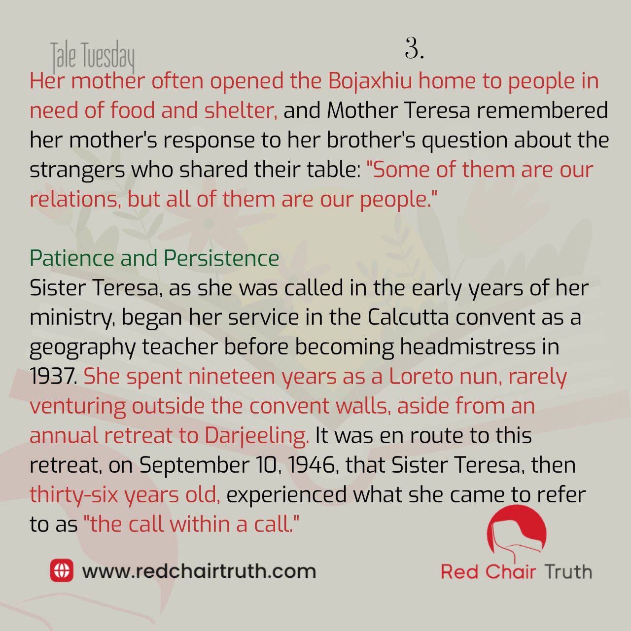 On September 10, 1946, while traveling four hundred miles from Calcutta to the foothills of the Himalayas, thirty-six-year-old Sister Teresa experienced what she called “the call within a call.”
