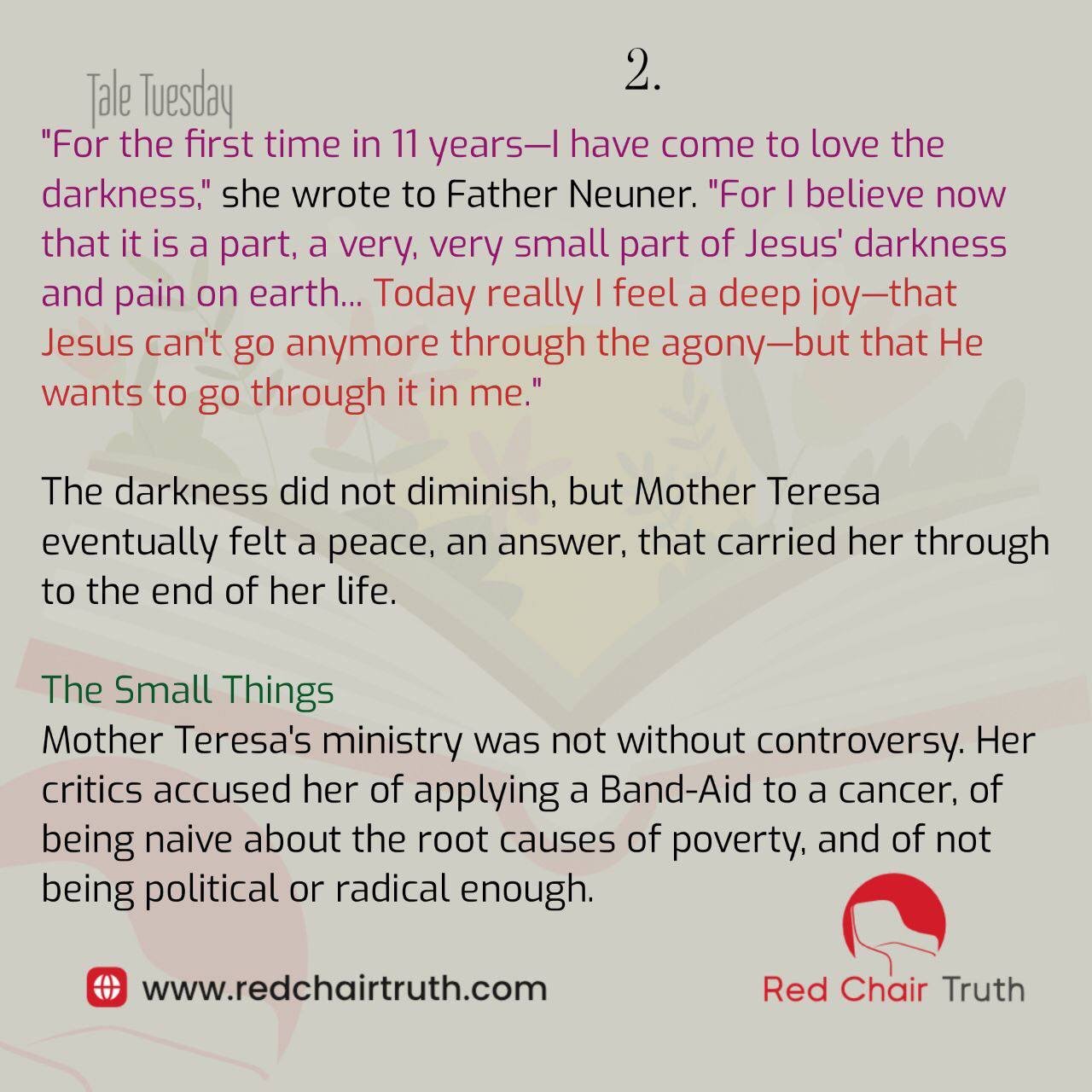 Instead of stifling her missionary zeal, Mother Teresa’s inner struggles increased her compassion and fueled her dedication to India’s poor. She sought to shine the light of Jesus’ love into their lives. In a 1961 letter to Father Joseph Neuner, her spiritual mentor, she wrote: