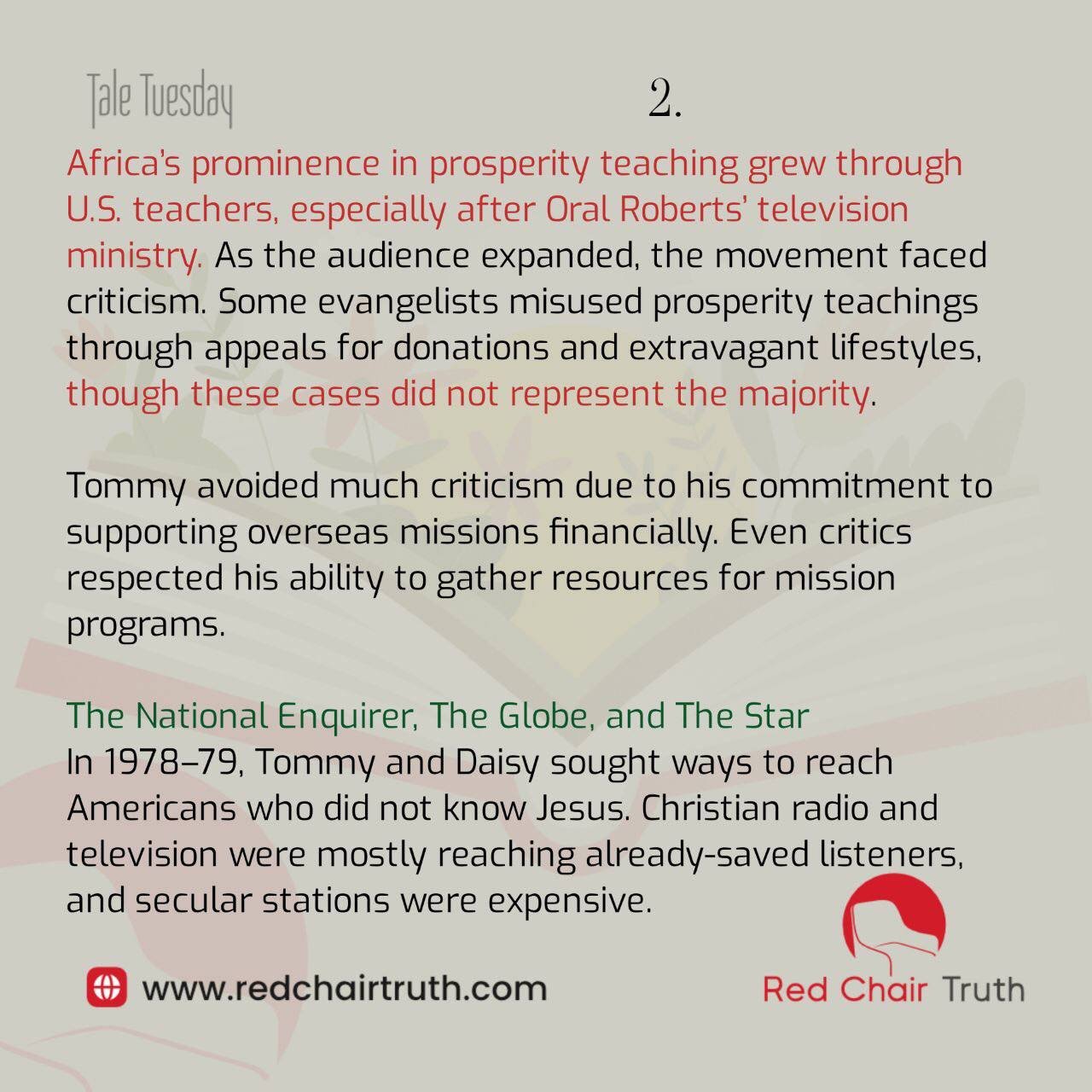 Africa’s strong association with prosperity teaching grew largely through American ministers, especially after the rise of Oral Roberts’ television ministry. As the movement expanded, it attracted criticism. Some evangelists misused prosperity teachings by making constant appeals for money or living extravagant lifestyles. However, these excesses did not represent the majority.
