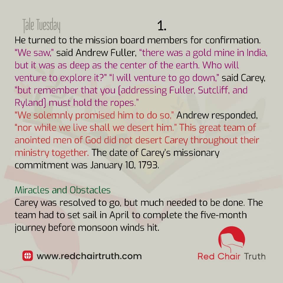 This great team of anointed men of God did not desert Carey throughout their ministry together. The date of Carey’s missionary commitment was January 10, 1793.