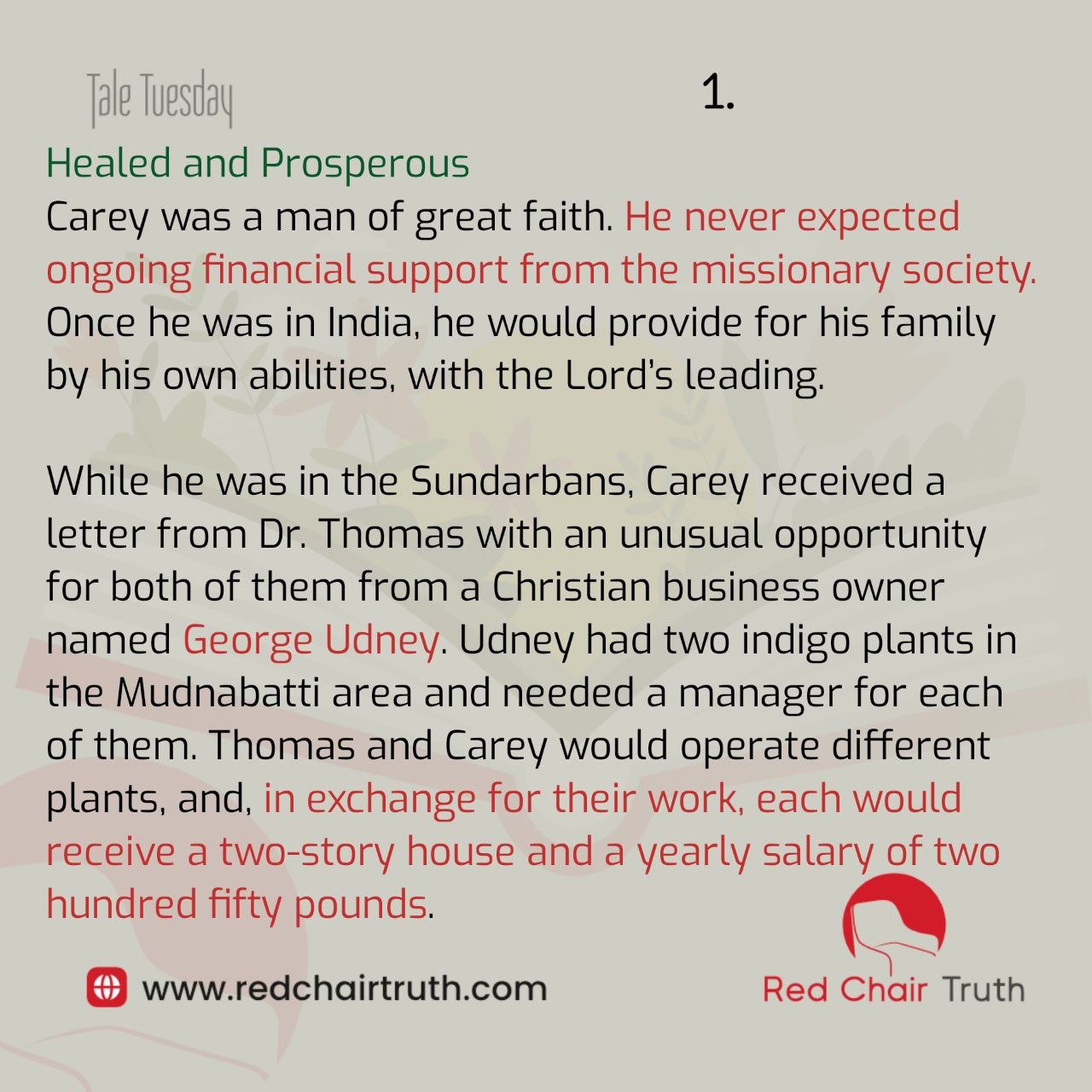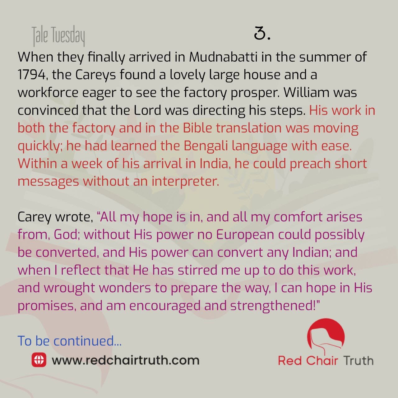 Carey was a man of great faith. He never expected ongoing financial support from the missionary society. Once he was in India, he would provide for his family by his own abilities, with the Lord’s leading.