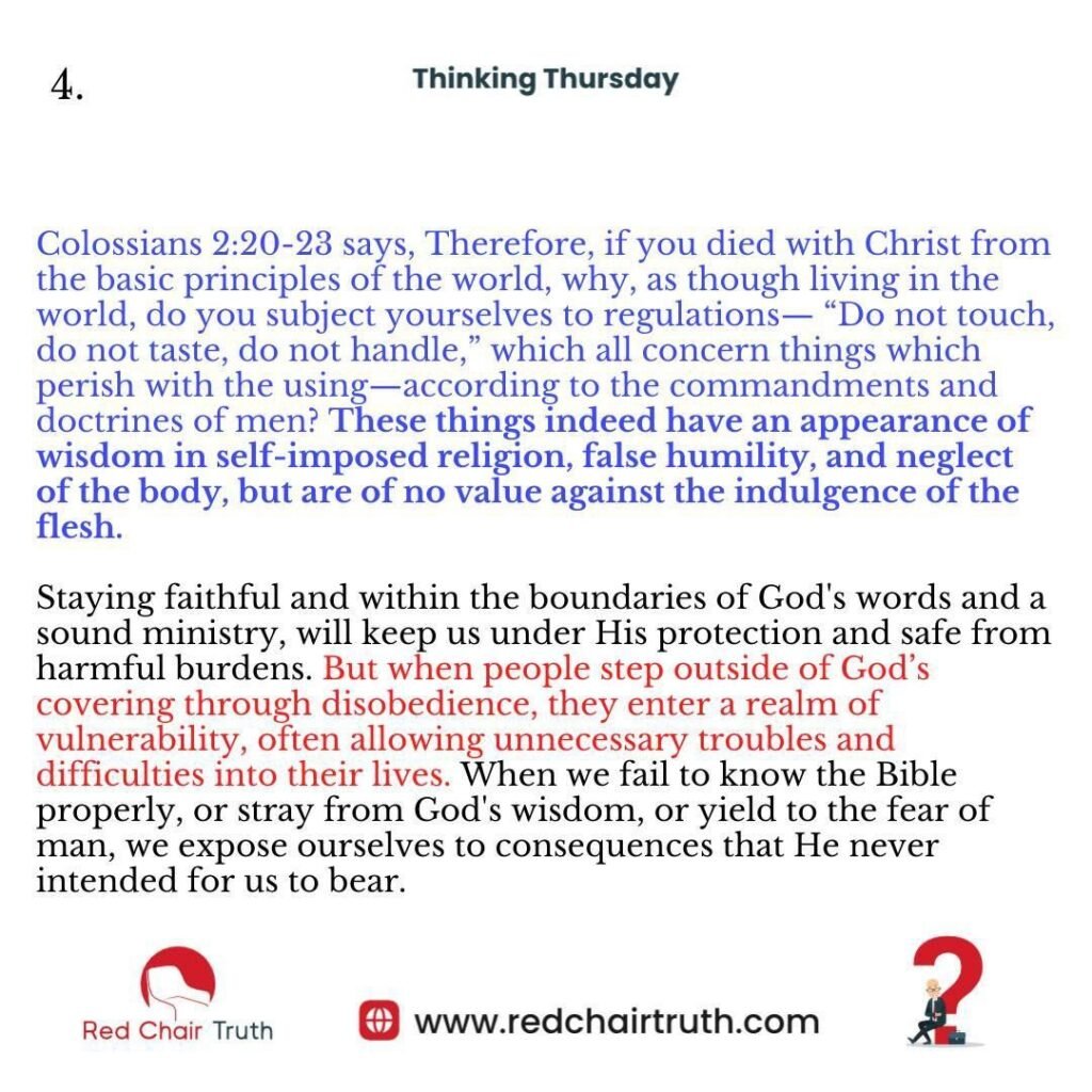 Staying faithful and within the boundaries of God’s words and a sound ministry, will keep us under His protection and safe from harmful burdens. But when people step outside of God’s covering through disobedience, they enter a realm of vulnerability, often allowing unnecessary troubles and difficulties into their lives. When we fail to know the Bible properly, or stray from God’s wisdom or yield to the fear of man, we expose ourselves to consequences that He never intended for us to bear.