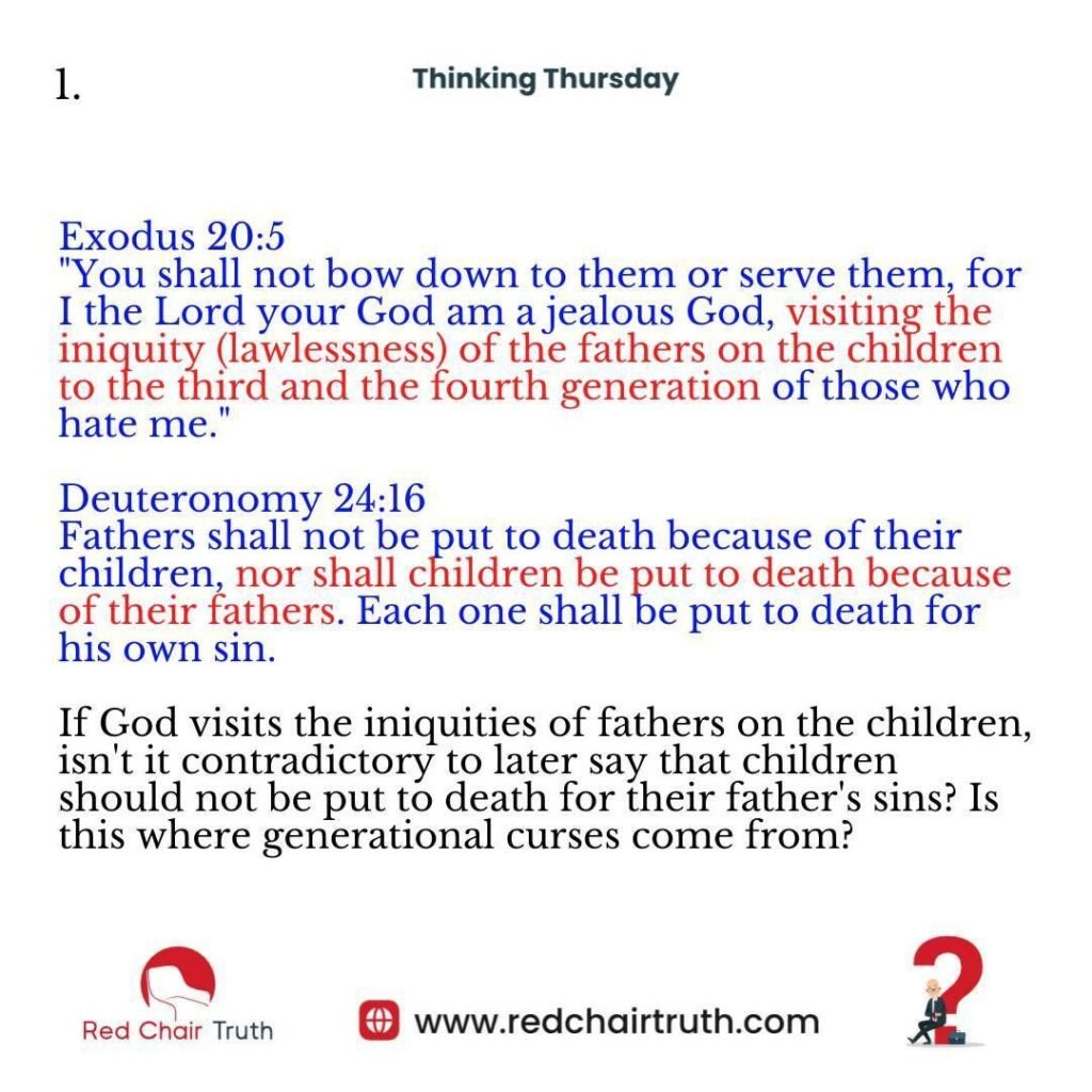If God visits the iniquities of fathers on the children, isn’t it contradictory to later say that children should not be put to death for their father’s sins? Is this where generational curses come from?