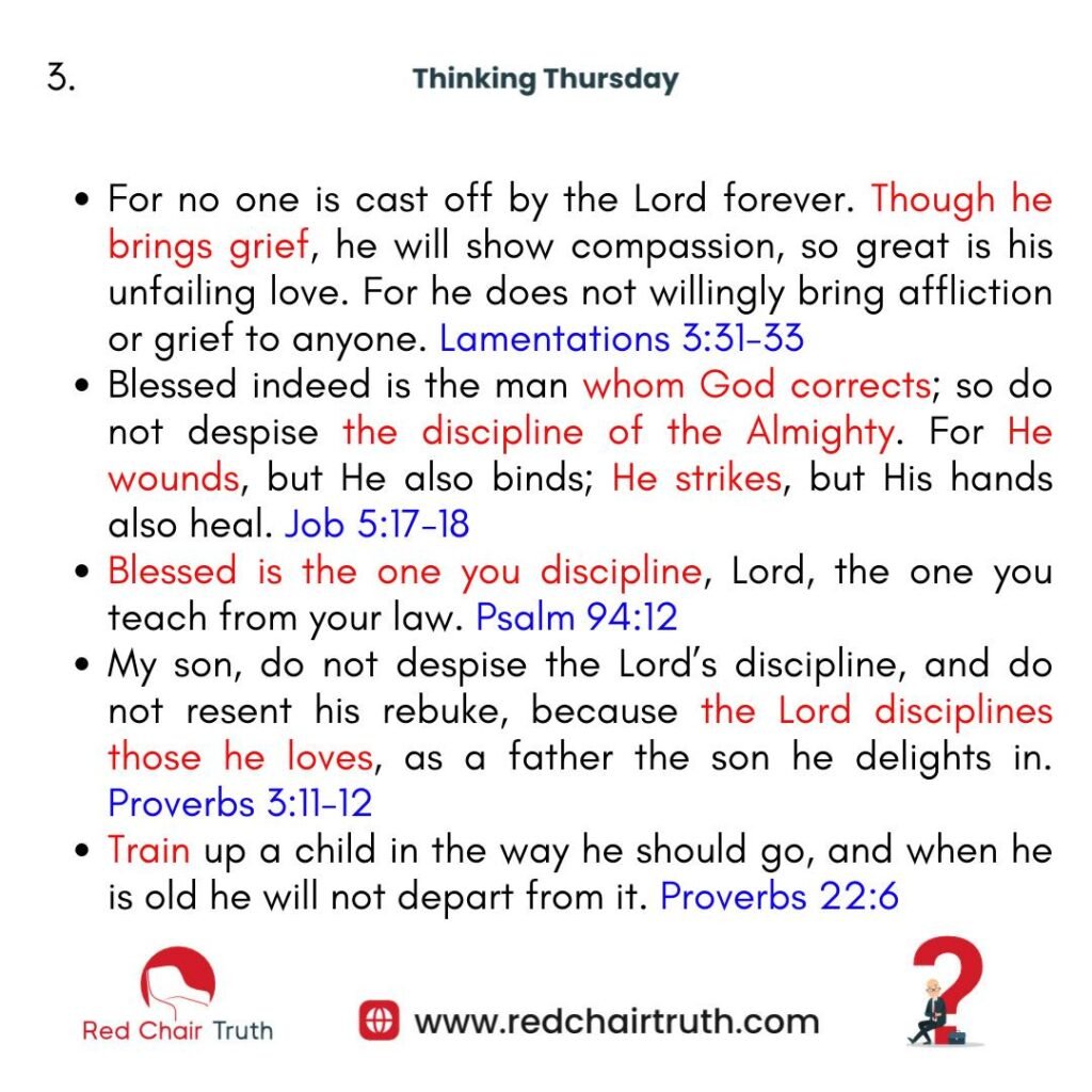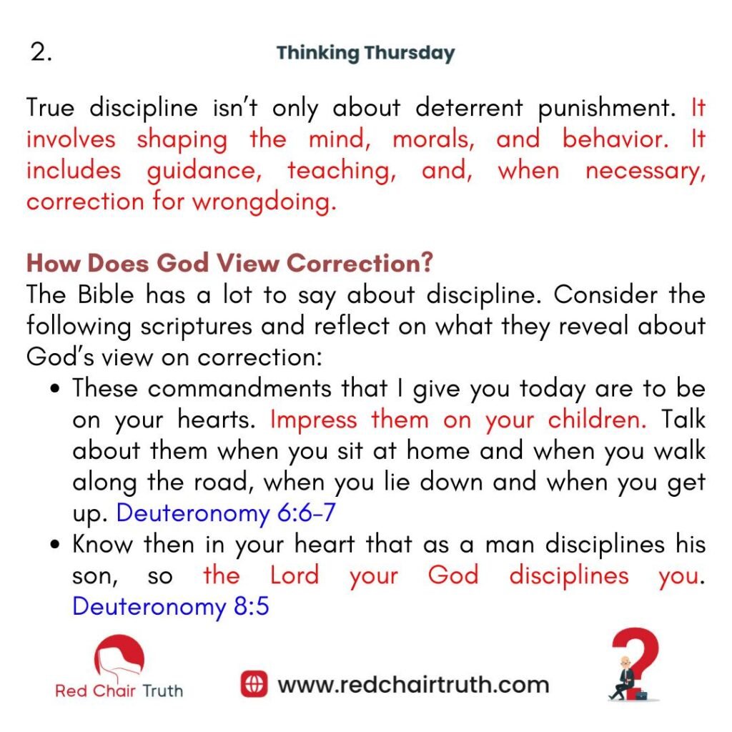 The Bible has a lot to say about discipline. Consider the following scriptures and reflect on what they reveal about God’s view on correction: