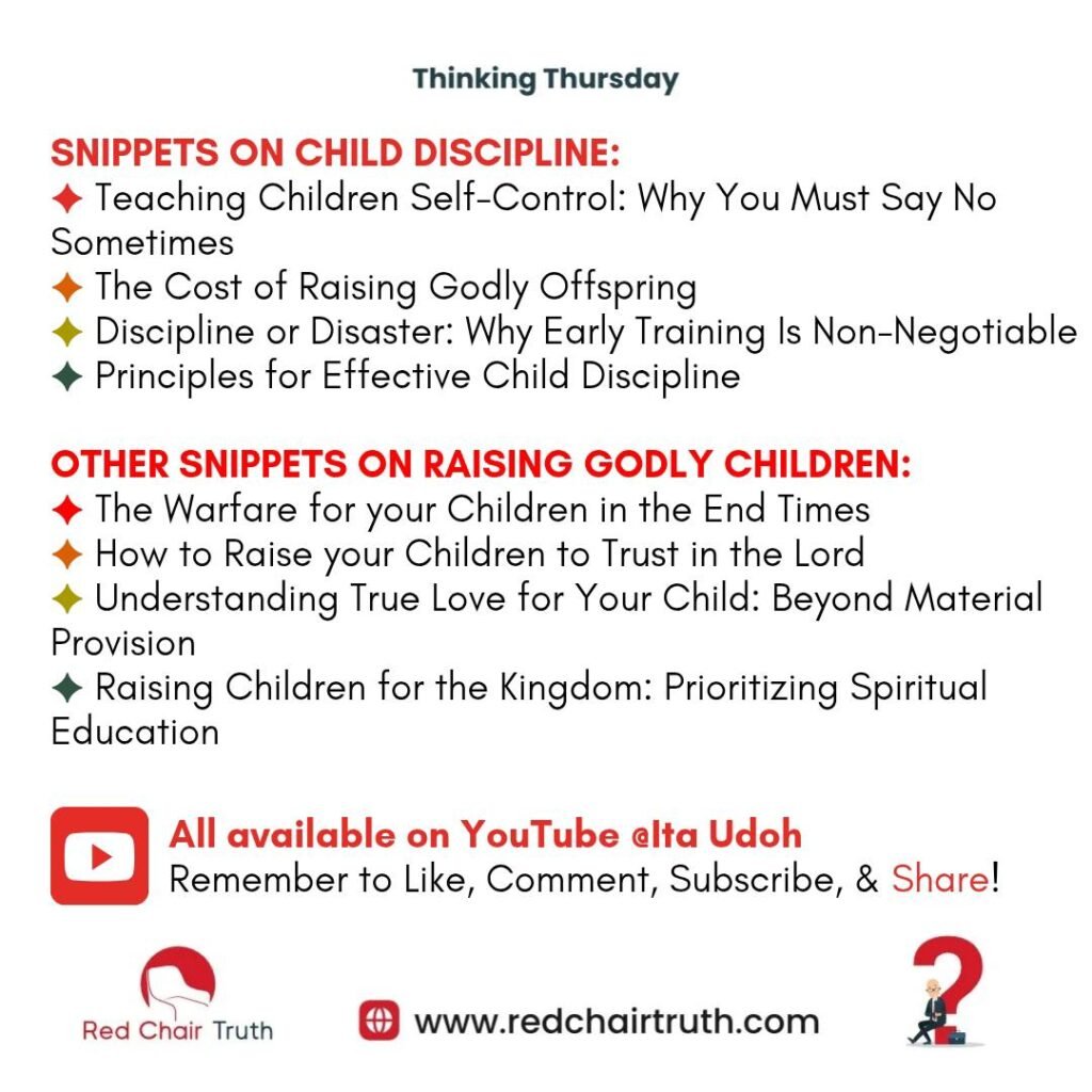 For more teachings on discipline, watch snippets from Pastor Ita Udoh’s sermons on YouTube @ItaUdoh